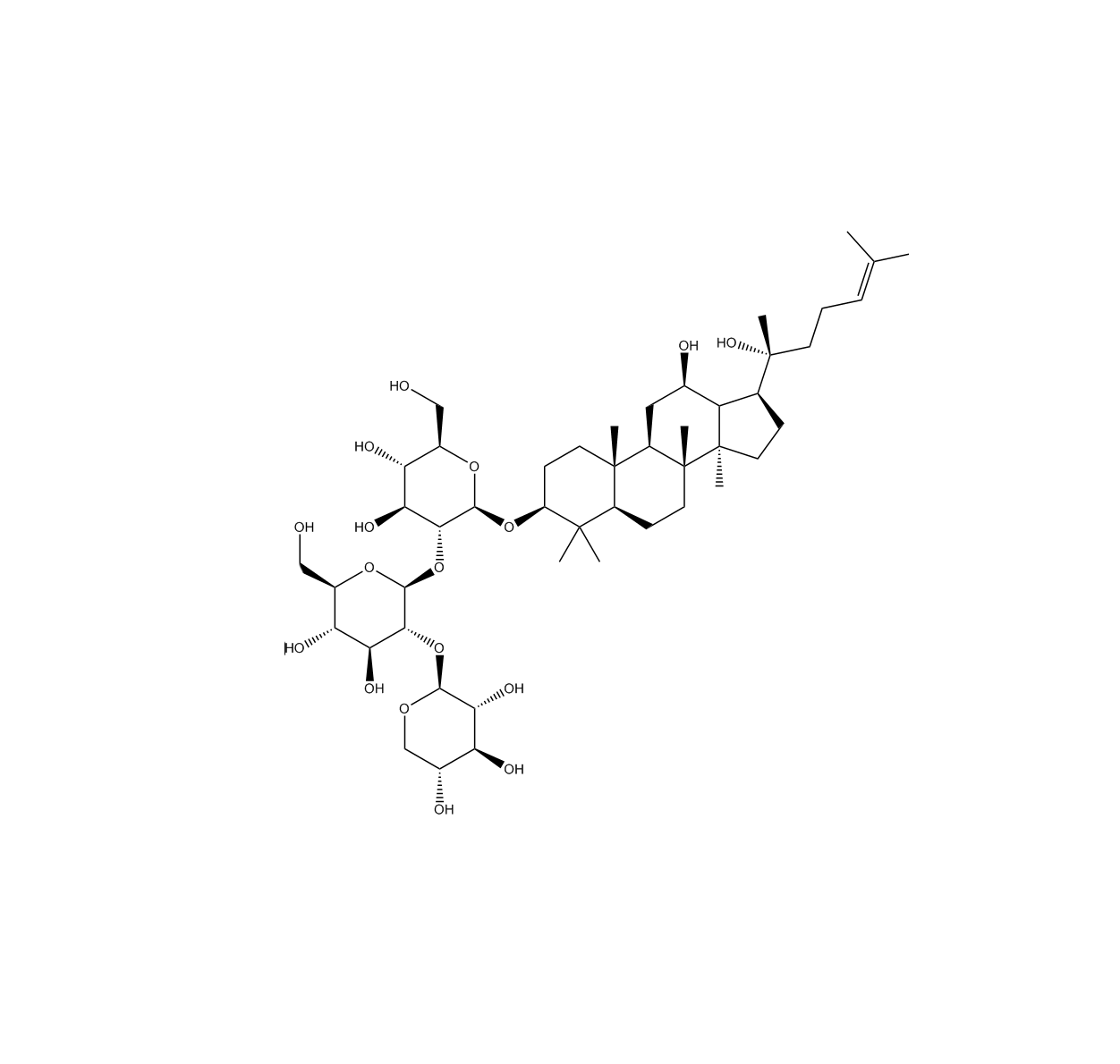 【英文別稱】 (3beta,12beta,20R)-12,20-Dihydroxydammar-24-en-3-yl O-beta-D-xylopyranosyl-(1- 2)-O-beta-D-glucopyranosyl-(1-2)-beta-D-glucopyranoside