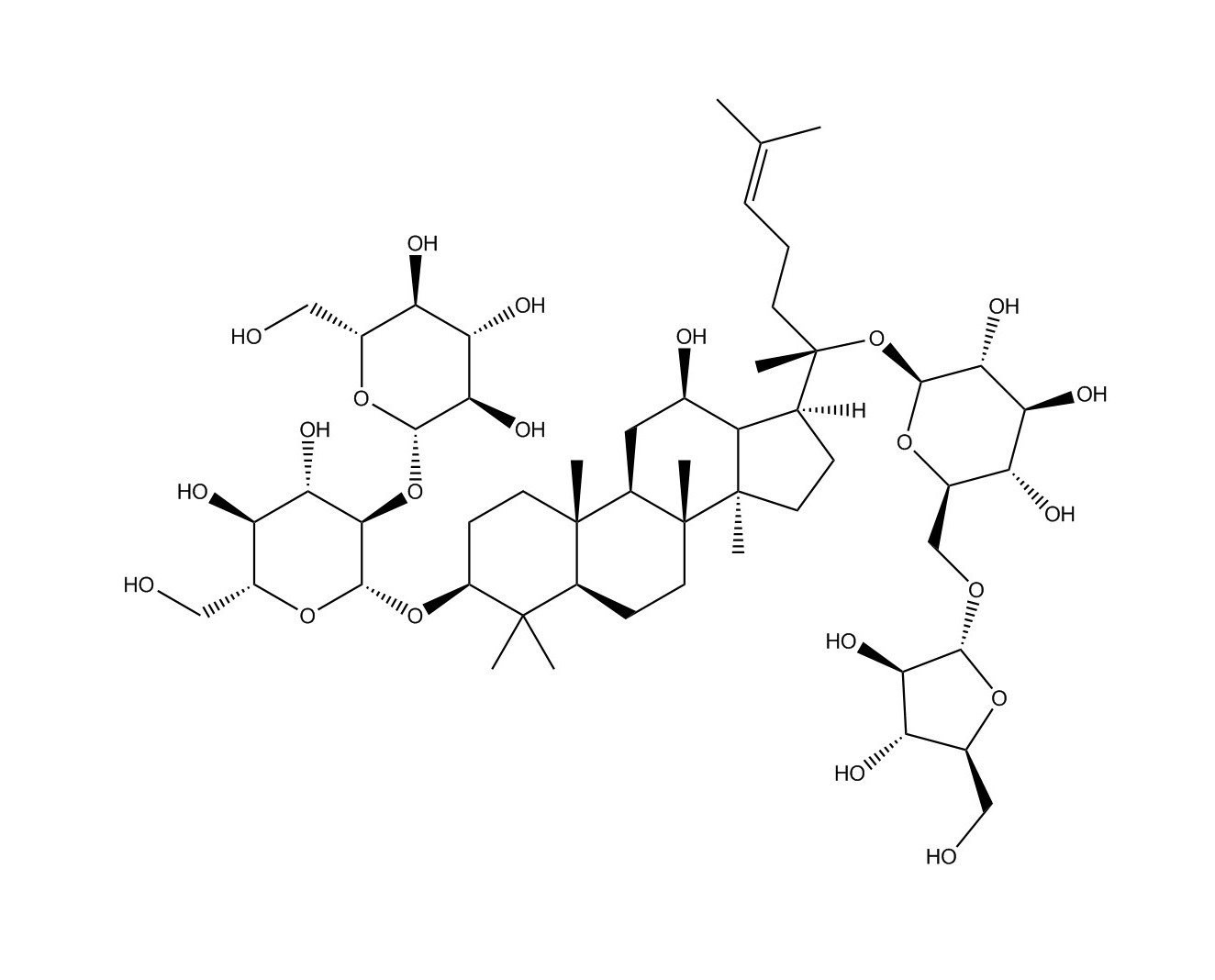 【英文別稱】 (3β,12β)-20-{[6-O-(α-L-Arabinofuranosyl)-β-D-glucopyranosyl]oxy}-12-hydroxydammar-24-en-3-yl 2-O-β-D-glucopyranosyl-β-D-glucopyranoside